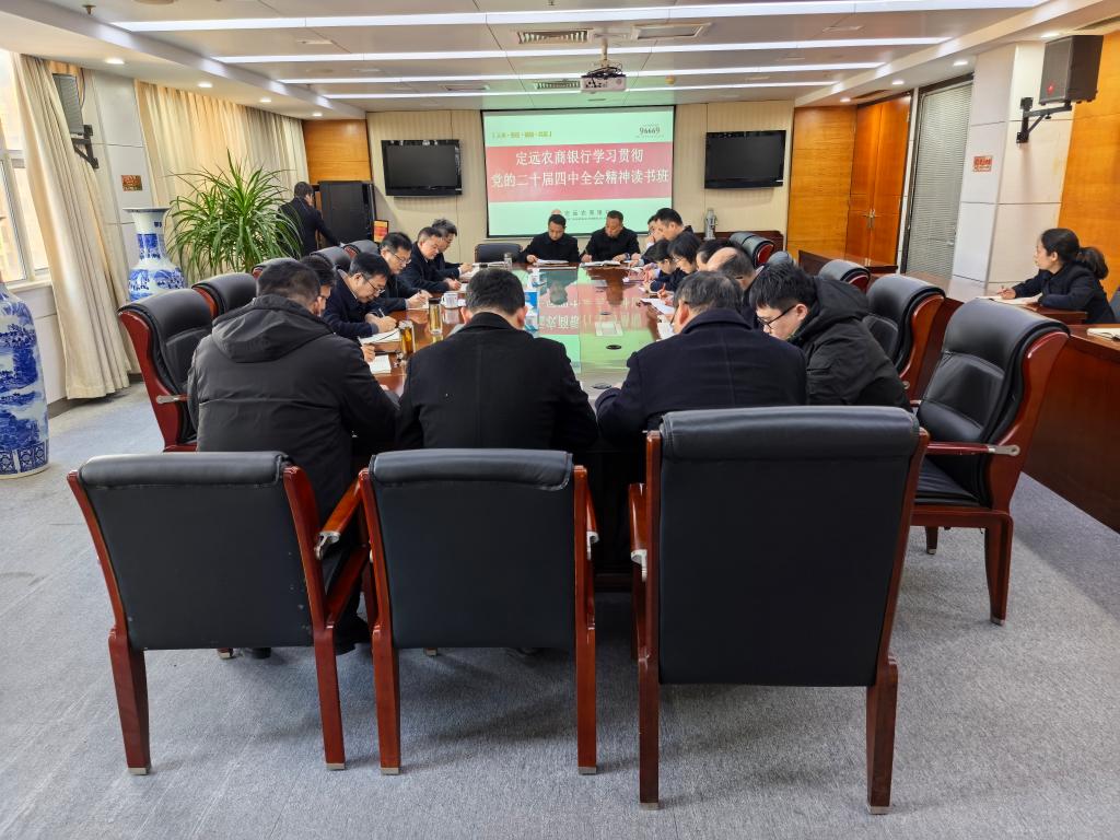 11月24日,定远农商银行举办学习贯彻党的二十届四中全会精神读书班,总行党委班子成员、各部门负责人齐聚一堂,以集中学习形式推动全会精神入脑入心。